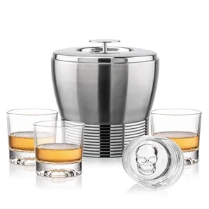 The Genoa Ice Bucket & On-the-Rocks Set is designed for effortless entertaining with a sleek, contemporary touch.