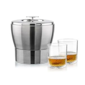 The Genoa Ice Bucket & On-the-Rocks Set is designed for effortless entertaining with a sleek, contemporary touch.