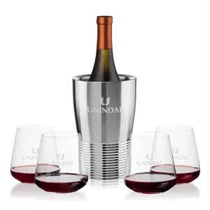 The Genoa Wine Cooler & Wine Glass Set brings a sleek, contemporary touch to any gathering.