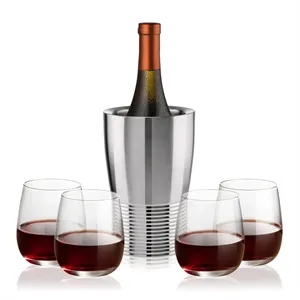 The Genoa Wine Cooler & Wine Glass Set brings a sleek, contemporary touch to any gathering.