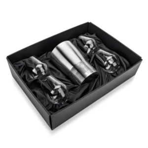 The Genoa Wine Cooler & Wine Glass Set brings a sleek, contemporary touch to any gathering.