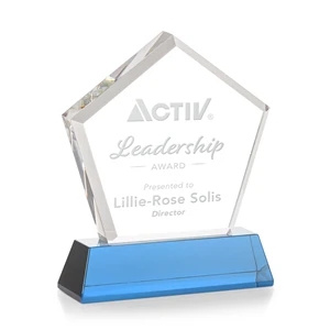 The Genosee Award on Base features a sparkling faceted extra-thick Optical Crystal pentagon mounted on your choice of colored base