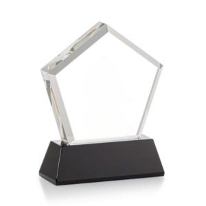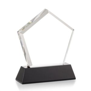 The Genosee Award on Base features a sparkling faceted extra-thick Optical Crystal pentagon mounted on tapered base.
