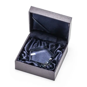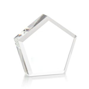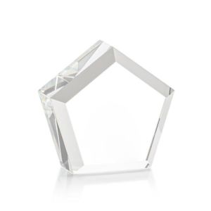 The Genosee VividPrint™ Paperweight is a thick and hefty Optical Crystal pentagon with a faceted border