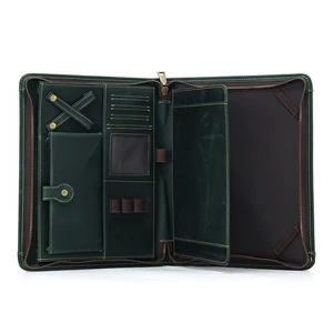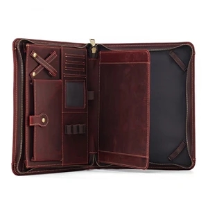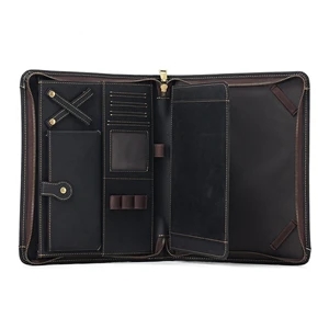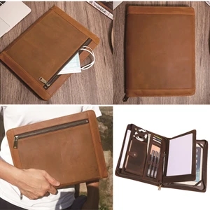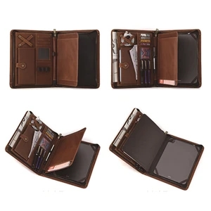 11.6 " x 9 " x 1.57" genuine leather padfolio with assorted card slots and compartments.