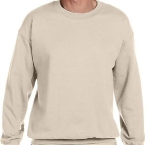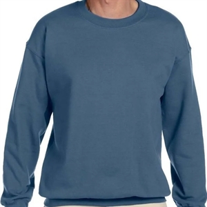 Crewneck with pill resistance, double-needle stitching, set-in sleeves, ribbed collar, cuffs, and waistband.