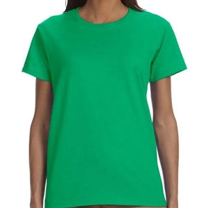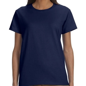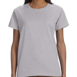 Ladies' t-shirt with double-needle stitching, narrow ribbed neck, and taped shoulder to shoulder.