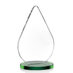 An elegant flat-edged pane of Starfire Crystal shaped like a droplet and mounted on a complimenting round clear or colored base.