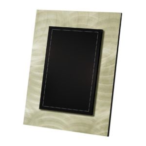 8" x 10" wall plaque made of black plastic backer with gold swirl and black aluminum plate