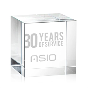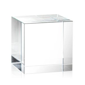 An elegantly, polished cube in pure Optical Crystal. A lovely award, paperweight or memento for desktop or shelf.