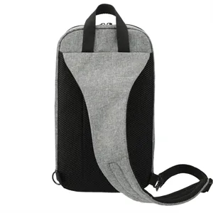 3.5" x 14.25" x 8.16" sling bag made of recycled materials.