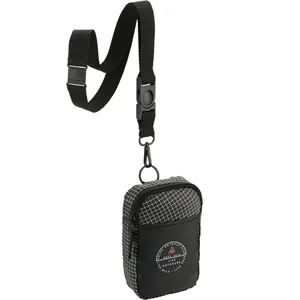 1.5" x 6.5" x 4.5" phone pouch with a strap