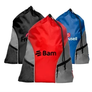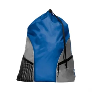 Gym Backpack w/ Drawstring closure & Mesh Front Pockets; 210D Polyester; Two tone design.