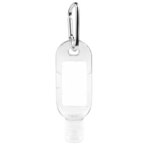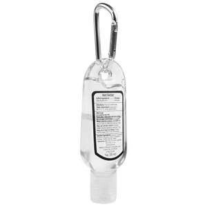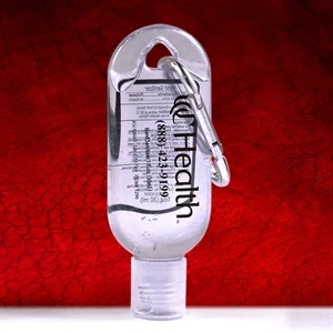 Bottle of 1 oz. citrus scented antibacterial sanitizer gel; features a carabiner for attaching.