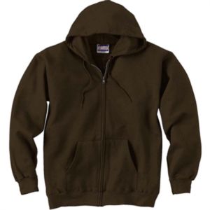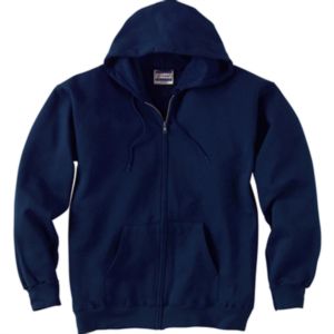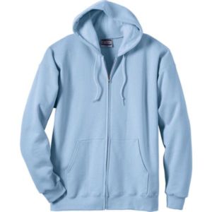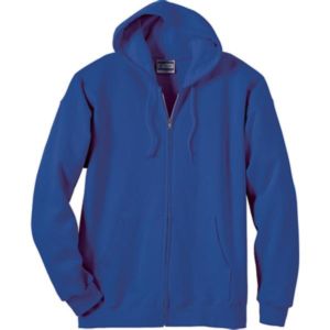 Adult unisex full zip hooded sweatshirt.