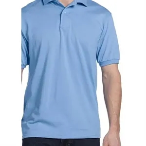 Polo with rib knit cuffs, double-needle bottom hem, and buttons.