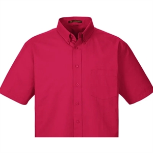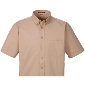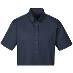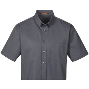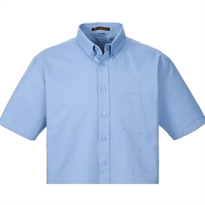 Men's shirt with buttons, back yoke, button-down collar, and chest pocket.