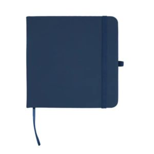Journal with recycled PU cover, 80 lined pages, bookmark, strap closure and elastic pen loop.