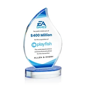 The Headley VividPrint™ Award features flame-shaped Starfire Crystal and is mounted on a round base with a textured sapphire top.