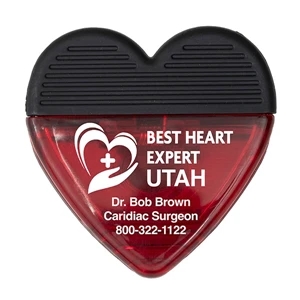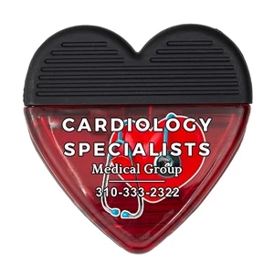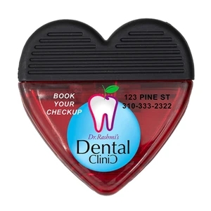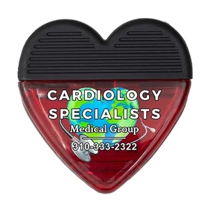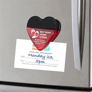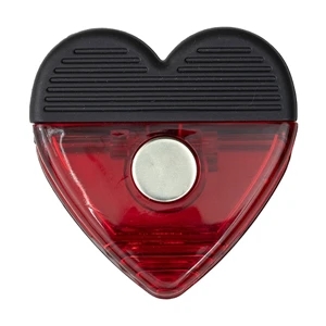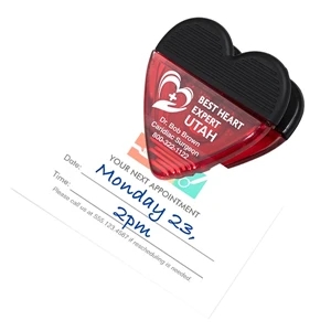 2 3/4" x 2 3/4" plastic heart-shaped magnetic memo clip with textured rubber handle.