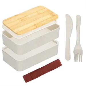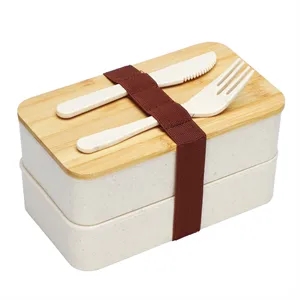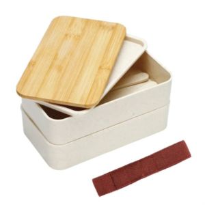 wheat straw bamboo top 2 compartment bento lunch box set with fork and knife