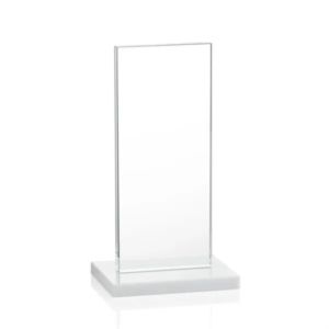 The full-color VividPrint™ Heathrow Award stands upright on an elegant White base for optimal view.