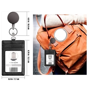Leather ID Badge Card Holder Retractable Badge Reel