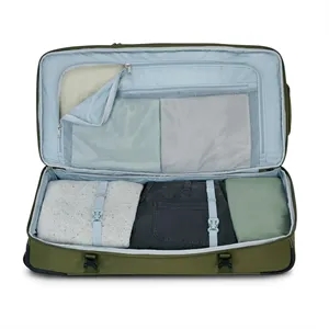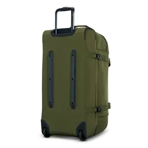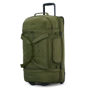 High Sierra large wheeled duffel with drop-bottom storage, smooth mobility, compression straps, and easy-access compartments for