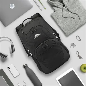 Laptop backpack with multiple pockets and 360 degree reflectivity.