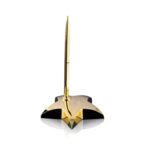 Opulent, dazzling 4-inch star pen set paperweight in 2 metallic finishes.