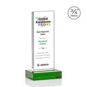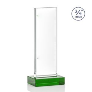 The Holmes Award features a Starfire Crystal mounted on a 0.75" thick Green Starfire base. Let your message POP with VividPrint.