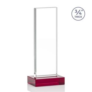 The Holmes Award features a Starfire Crystal mounted on a 0.75" thick Red Starfire base. Let your message POP with VividPrint.
