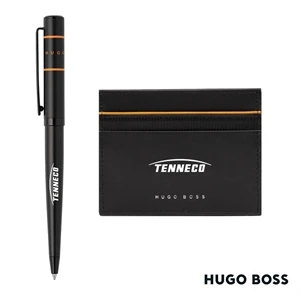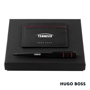 Hugo Boss® Gear Card Holder and Ribbon Matrix Ballpoint Pen is a classy and sophisticated executive gift set.