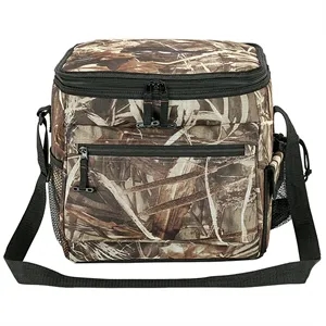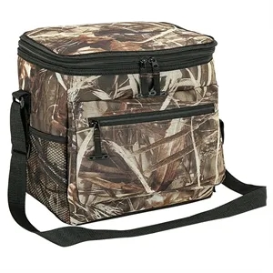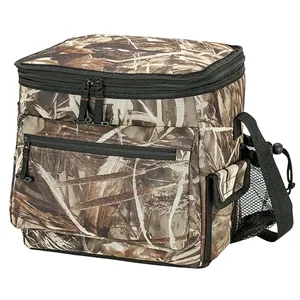 8.5" x 11.5" x 11" Huntington 24-can camo cooler with heat-sealed PEVA lining; includes 1 1/4" x 46" adjustable shoulder strap.