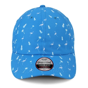 Unstructured six-panel baseball cap made of 100% polyester performance fabric. Blank.