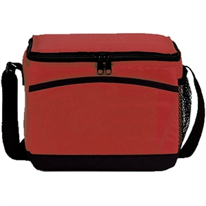 210D/300D Ripstop PVC with PEVA Lining. 8.5"W x 6.5"H x 5.75"D. Fully insulated, front pocket, mesh holder, adjustable strap!