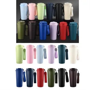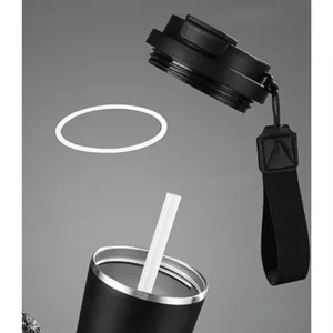 Portable Insulated Coffee Cup With Straw And Strap. Suitable For Car, Office, Travel, And Promotional Gifting.