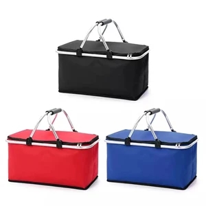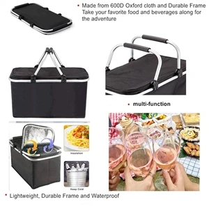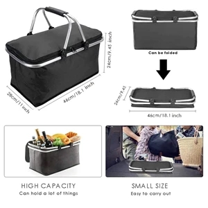 18.5" x 11.02" x 9.05" insulated polyester 30L folding picnic basket with handles.