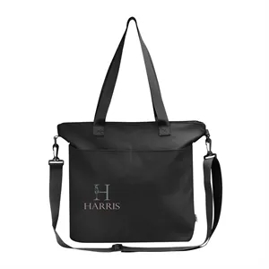 5.5" x 14.25" x 18" laptop tote bag made with recycled polyester.