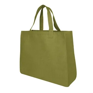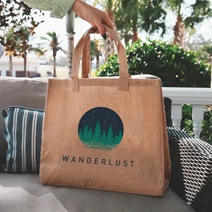 7" x 14" x 17" laminated jute tote bag with 7" gusset and 16" carrying handles.