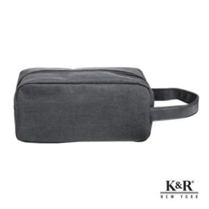 Toiletry bag with 300D polyester handle for travel or everyday use.