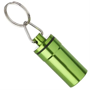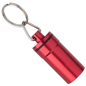 Aluminum Pill Bottle Holder Key Chain, Includes Key Ring, Screw on Lid with Rubber Seal