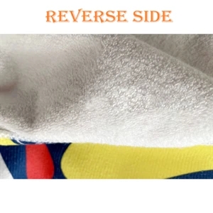 Full Color Edge-To-Edge Dye-Sublimation; King Size Plush Microfiber with cotton terry loops backing; 40"W x 75"L