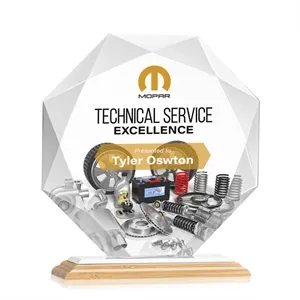 Striking Starfire Octagon award refracts light through all of its facets creating a brilliant display for achievement recognition.