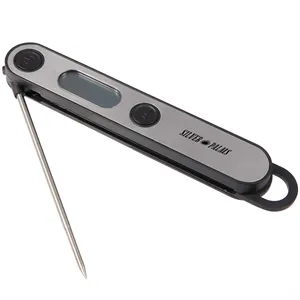 This food thermometer features foldable stainless-steel probe, built-in temperature guide, and precision temperature sensor.