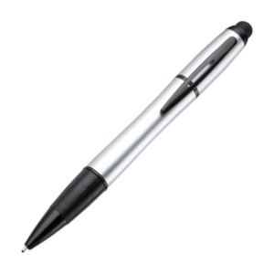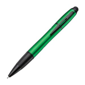 Plastic twist action soft hybrid ink ballpoint pen with stylus and light up barrel