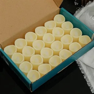 Warm White LED Tea Lights, Flickering Melted Edge, Cozy Glow, Safe & Flameless, Perfect for Centerpieces, Weddings, Home Decor.