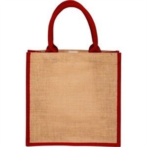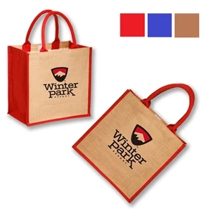 Laminated Jute Bags w/ Colored Sides and Handles; 100% Natural Jute Fiber.