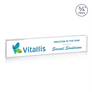The Lancaster Nameplate is crafted from premium Starfire Crystal, offering exceptional clarity and a sleek, modern look