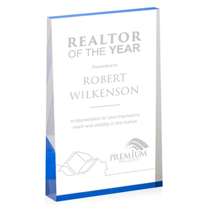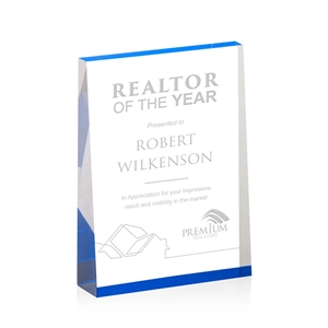 The Lansing Award is a thick freestanding acrylic award that tapers to the top and provides a large etch area.
